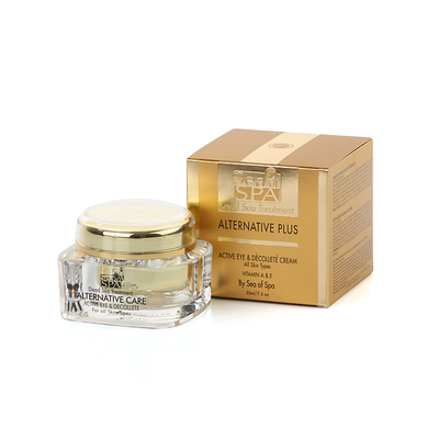 Активный крем для глаз и зоны декольте ALTERNATIVE PLUS. Крем для максимальной защиты нежной кожи вокруг глаз и зоны декольте. Крем смягчает структуру кожи и предотвращает появление морщин. Быстро впитывающийся увлажняющий крем легкой текстуры, предназначенный для воздействия на проблемные участки и придающий Вашей коже влажность и красоту на каждый день. Обогащен гиалуроновой кислотой для усиления увлажняющего эффекта, успокаивающим гамамелисом и минералами Мертвого моря.