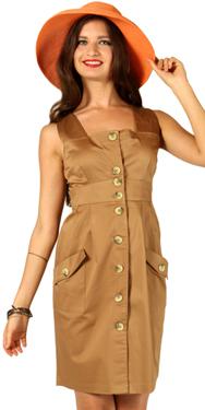 Лёгкий кантри - открытые плечи, каре спереди и на спинке... Сквозная застёжка на пуговицы. Складки от втачного пояса книзу - создают свободу объёма и форму тюльпана. Два глубоких кармана с клапанами-отворотами и пуговкой.
