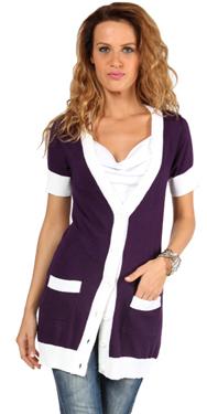 Классика жанра! Удлиненный кардиган с контрастными деталями из тонкой буклированной пряжи. На пуговицах. Планка выреза горловины и застёжки, резинка низа и верха накладных карманов - контрастного белого цвета. Силуэт прямой.