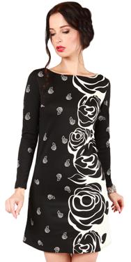 Цветочная графика и модное ассиметричное расположение рисунка -привлекают внимание и скрывают недостатки. Вырез- широкая лодка. Длинный рукав. Полуприлегающий силуэт.
