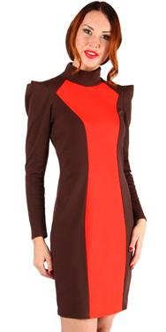 Модное платье-футляр с фигурной контрастной вставкой визуально делает фигуру стройнее. Оригинальные рукава со складками на плече создают POWER силуэт. Невысокий воротник стойка. Сзади внизу разрез для свободы шага. По фигуре.