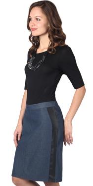 ДЖИНС и КОЖАНЫЕ ЛАМПАСЫ! Джинсовая юбка из эластичного тонкого денима. Резинка только сзади, спереди - гладкий пояс. Посадка средняя. Модно и очень комфортно!