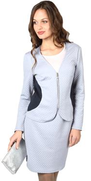Облегающий жакет из трикотажа с эффектом стёжки. Контрастные вставки по бокам визуально "приталивают" силуэт. Привлекает внимание открытая серебристая молния с декоративным замочком!