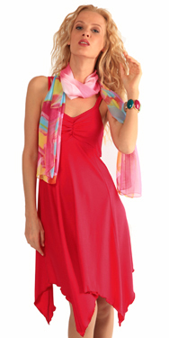 Экзотический открытый пляжный сарафан с тонкими двойными бретелями. Лиф двухслойный, собран по средине. Юбка из 4-х клиньев. А-силуэт. Внимание привлекает оригинальная линия низа углами - <<зонтик>>.