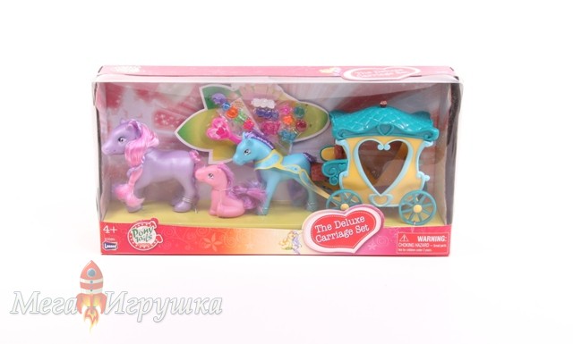 Описание: Красивые гламурные пони отвезут невесту в карете на свадебную церемонию. В комлекте 3 пони с аксессуарами и украшениями для гривы и карета.,