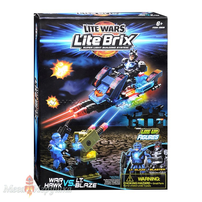 Описание: "Конструктор Lite Brix Военный транспорт с фигуркой, 69 стандартных блоков, 1 фигурка, 1 светящаяся фигурка, 1 светящийся блок, 1 лист с наклейкой, 1 схема сборки. необходимо 5 х LR41 батарей (в комплекте). ",