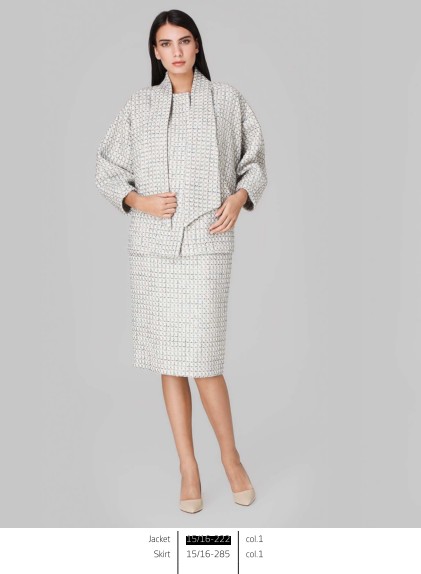 Жакет свободного кроя с воротником-галстуком. Выполнен из ткани с фактурой "рогожка". Прекрасный вариант для весны!