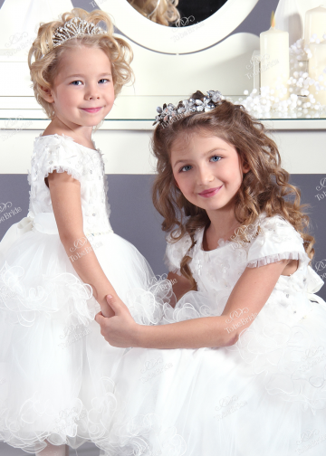 Роскошное белое платье-событие для маленьких модниц. Хлопчатобумажный подклад платья заботится о комфорте детской кожи. Атласный верх платья расшит миниатюрными цветками с пайетками. Юбка с воланами в два яруса из четырех слоев фатина и вшитым жестким подъюбником. Застежка на молнии.