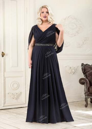 Это платье из тонкого джерси в классическом <<греческом>> стиле станет незаменимым в Вашем гардеробе. Глубокий темно-синий цвет оттеняет глаза и волосы. Великолепный крой идеально подчеркивает достоинства фигуры и зрительно <<стройнит>>. Акцент в этой модели сделан на рукавах-воланах со сложной драпировкой. Именно эта деталь придает образу загадочности и воздушности. Изящное дополнение - металлический пояс с камнями, красиво обрамляющий линию талии.