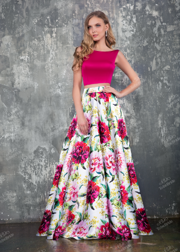 В этом комплекте из топа и юбки Вы готовы к встрече лета! Насыщенный цветочный принт, словно магнит, притягивает к Вам сотни восхищенных взглядов! Укороченный однотонный топ идеально <<сбалансирован>> яркой широкой юбкой <<в пол>>. Этот комплект из модной ткани микадо станет настоящей <<палочкой-выручалочкой>> для любого Вашего выхода в свет!