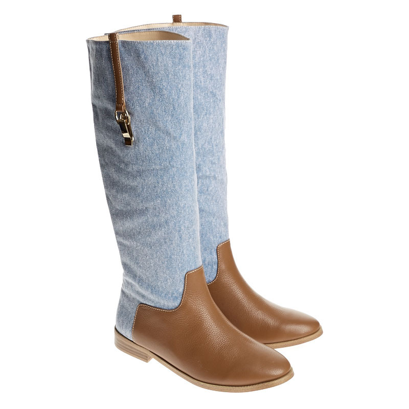 Стильные и эффектные сапоги Gerzedo. Низ сапог выполнен из натуральной коричневой кожи. Верх сапог выполнен из текстильного материала "джинс". Подкладка-натуральная кожа. Сбоку молния посередине сапога для большего удобства.