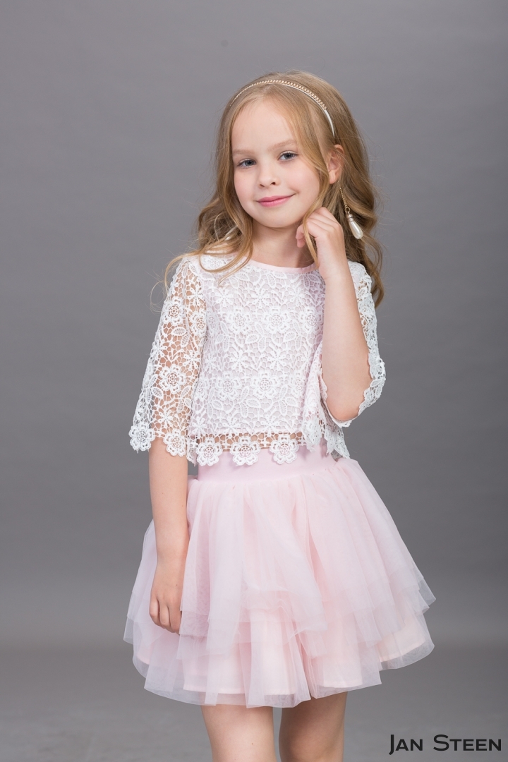 Комплект пышная юбка из мягкого фатина, пояс на широкой резинке. Топ из хлопка декоррирован нежным кружевом.
