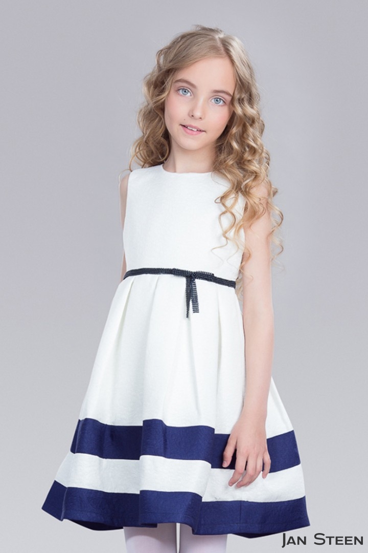 Нарядное универсальное детское платье Baby Steen выполнено из буклированного атласа . Эта модель детского платья представлена в одном цветовом решение , как на фото. Лиф детского платья приталенный, линия талии слегка завышена, круглая горловина, сзади застежка-молния, подкладка из хлопка. Юбка в бантовую складку по верхней линии отреза, низ юбки отделан этой же тканью контрастного синего цвета. На талии узенький декоративный пояс из биссерной ленты - впереди украшен декоративным бантиком , сзади завязывается в бант и регулирует объем. Детское платье в стиле - 60х в тренде в этом сезоне.