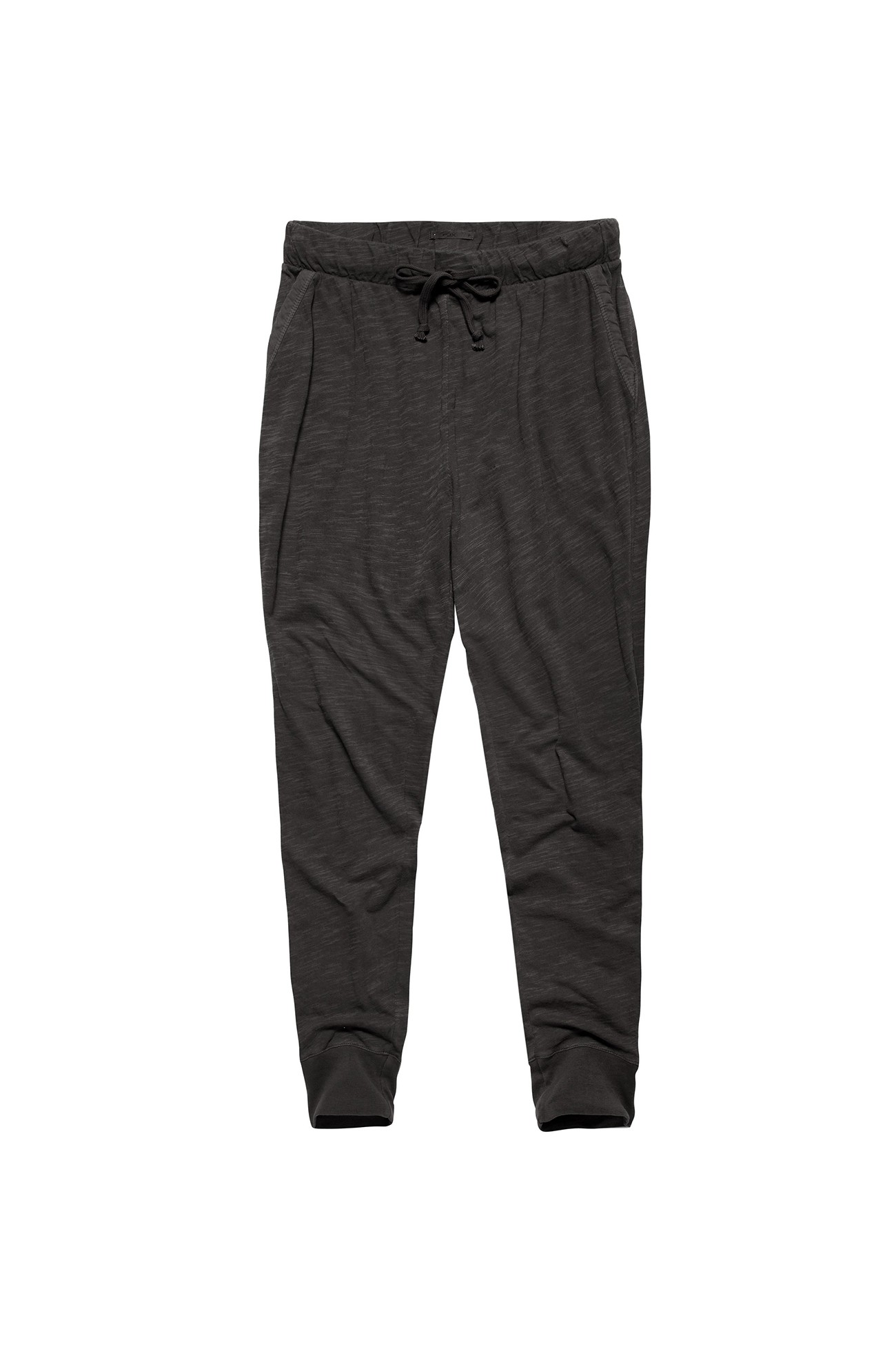 Брюки женские. Модель выполнена из трикотажного полотна (кулирка). Детали: пояс на резинке и кулиске со шнурком; два врезных кармана; струящийся силуэт; манжеты на трикотажной резинке.