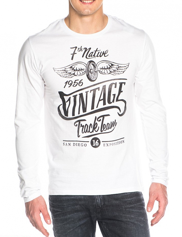Футболка с длинным рукавом мужская. Стиль- повседневный. Модель выполнена из хлопкового трикотажа. Детали: круглый вырез; принт; длинный рукав.