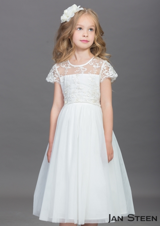 Описание:Нарядное платье для девочки - шикарный наряд для торжественных мероприятий и праздников. Лиф платья выполнен из изящного кружева с цветочным орнаментом. Горловина круглая с узким кантом. Короткие рукава из кружева с купонным краем. На спинке расположена застежка-молния. Юбка платья многослойная, верхний слой из мягкой шелковистой сеточки. По линии талии юбка присборена в мягкие складки. Длина платья - чуть ниже колен. Подкладка платья выполнена из хлопковой ткани. Объем талии регулируется поясом, который сзади завязывается в пышный, красивый бант. В комплекте к платью прилагается узкий ободок для волос, декорированный пышными очаровательными цветами.