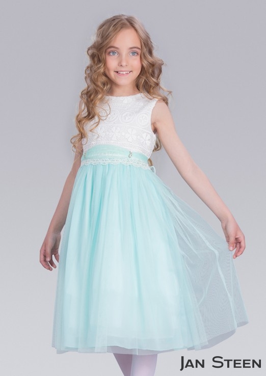 Описание:Для данного детского платья Baby Steen используется контрастная комбинация двух цветов и двух тканей, на хлопковой подкладке, сзади застежка-молния. По линии талии заложены мягкие складки, она завышена. Верхняя часть платья выполнена из плотного ажурного хлопкового кружева цвета айвори, юбка платья выполнена из шифона завуалированного трикотажной сеткой. Сверху пришит декаративный пояс украшенный стразами, который сзади завязывается в бант и позволяет регулировать ширину платья.