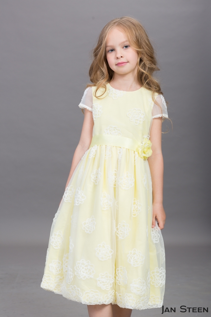Описание:Восхитительное детское платье Baby Steen из хлопка и нежной вуали с декором смотрится благородно и нарядно, его можно купить в нашем интернет магазине в двух цветах: завуалированный голубой и желтый. Верхний слой из прозрачной белой вуали, украшенной набивным цветочным орнаментом. Талию украшает атласный поясок, украшенный декоративным цветком, который сзади завязывается в бантик и регулирует объем талии. На спинке - застежка-молния. Нижний слой платья из хлопковой ткани ярко голубого или желтого цвета. У платья маленький японский рукавчик.