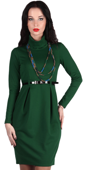 ОБТЕКАЕМАЯ ФОРМА подчёркивает ваши достоинства и не стесняет свободы движений! Облегающий лиф с воротом-стойкой. Подрез под грудью подчёркнут лаковым пояском АЛЬФА чёрного цвета с металлической пряжкой. Поясок входит в комплект. Свободный объём юбки-кокон создаётся складками спереди и на спинке.