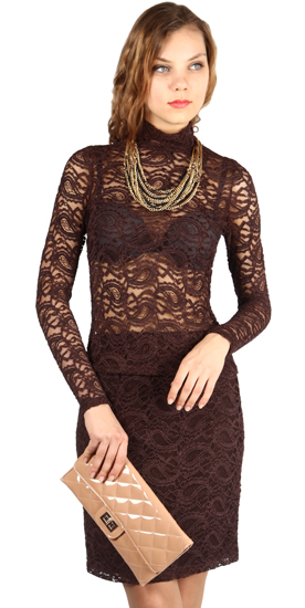 Водолазка TW КРУЖЕВО кофе