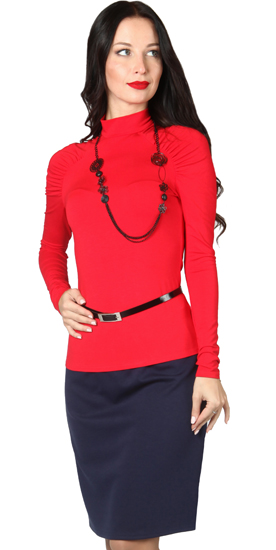 АКЦЕНТ НА ЛИНИИ ПЛЕЧ! Внимание привлекает сборка вдоль линии реглана спереди и сзади. Невысокий воротничок поло. Прилегающий силуэт.