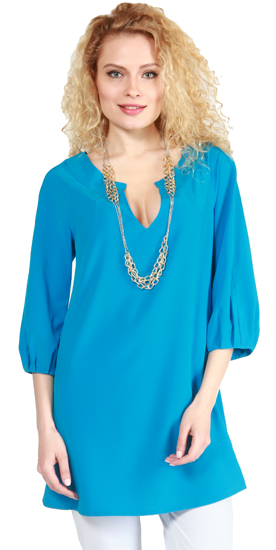 КОЛЛЕКЦИЯ "ПРИВЕТ 70-м!"! Благородная туника А-силуэта с вырезом в форме тюльпана. Рукава реглан 3/4 собраны складками по линии низа. Носить свободно и под пояс. Модно этим летом с узкими брючками.
