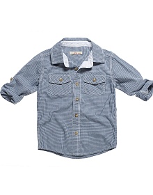 Рубашка хлопковая для мальчиков. Стиль- повседневный. Рукав длинный, регулируется хлястиком. Застежка- пуговицы. Детали: два нагрудных кармана на пуговицах.