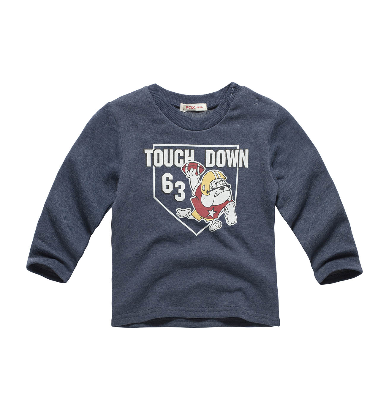 Толстовка для мальчиков. Стиль- повседневный. Модель выполнена из мягкого футера. Рукав- длинный. Детали: принт в передней части изделия; круглый вырез; на плече застежка на кнопки.