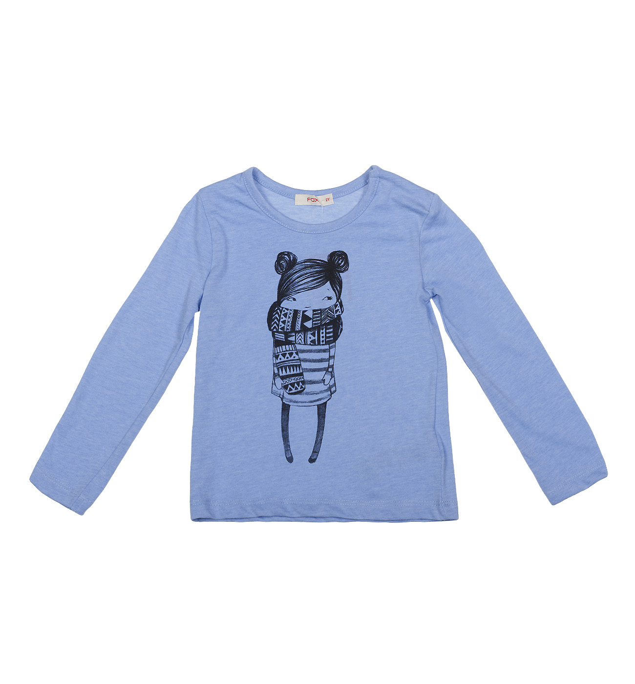 Футболка с длинным рукавом для девочек. Стиль- повседневный. Модель выполнена из хлопка. Рукав- длинный. Детали: круглый вырез, на груди принт.