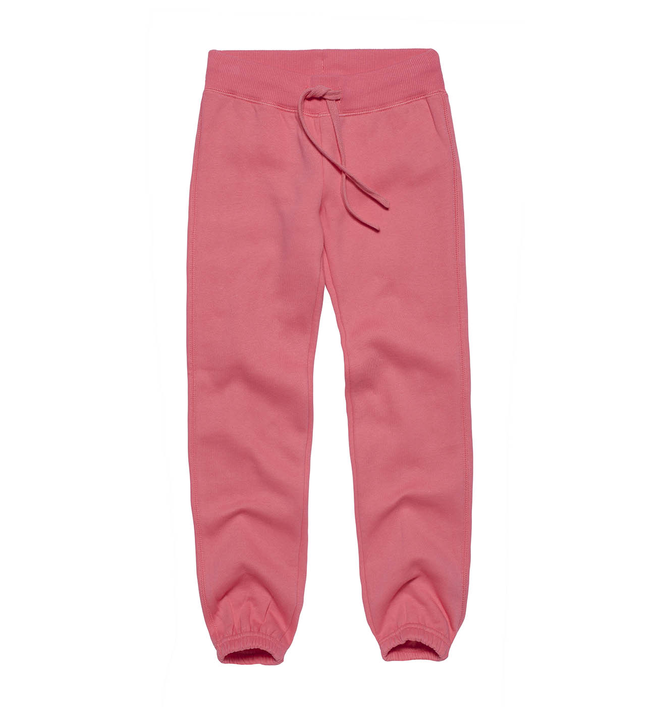 Брюки для девочек. Модель выполнена из футера с начесом. Детали: пояс на резинке и кулиске со шнурком; манжеты на трикотажной резинке.