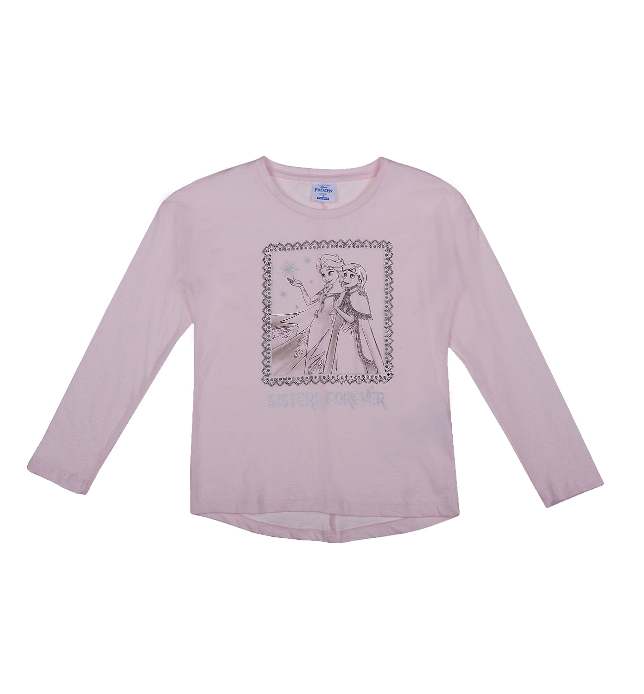 Футболка для девочек. Модель выполнена из трикотажа (кулирка). Детали: круглый вырез; длинный рукав; принт.