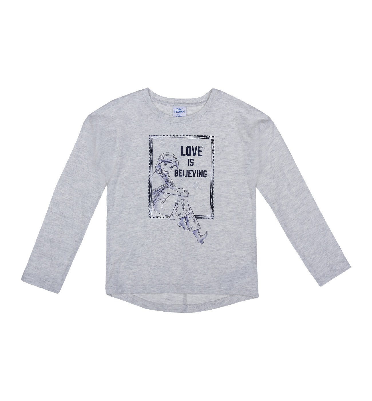 Футболка для девочек. Модель выполнена из трикотажа (кулирка). Детали: круглый вырез; длинный рукав; принт.
