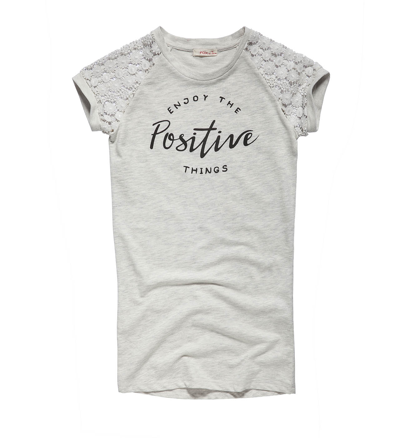 Платье для девочек. Детали: круглый вырез; рукава выполнены из кружевной ткани; принт; прилегающий силуэт.