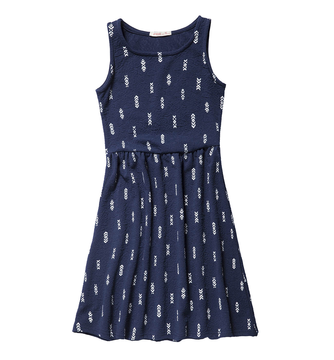 Платье для девочек. Модель выполнена из фактурной ткани. Детали: круглый вырез; присборенная юбка; принт.