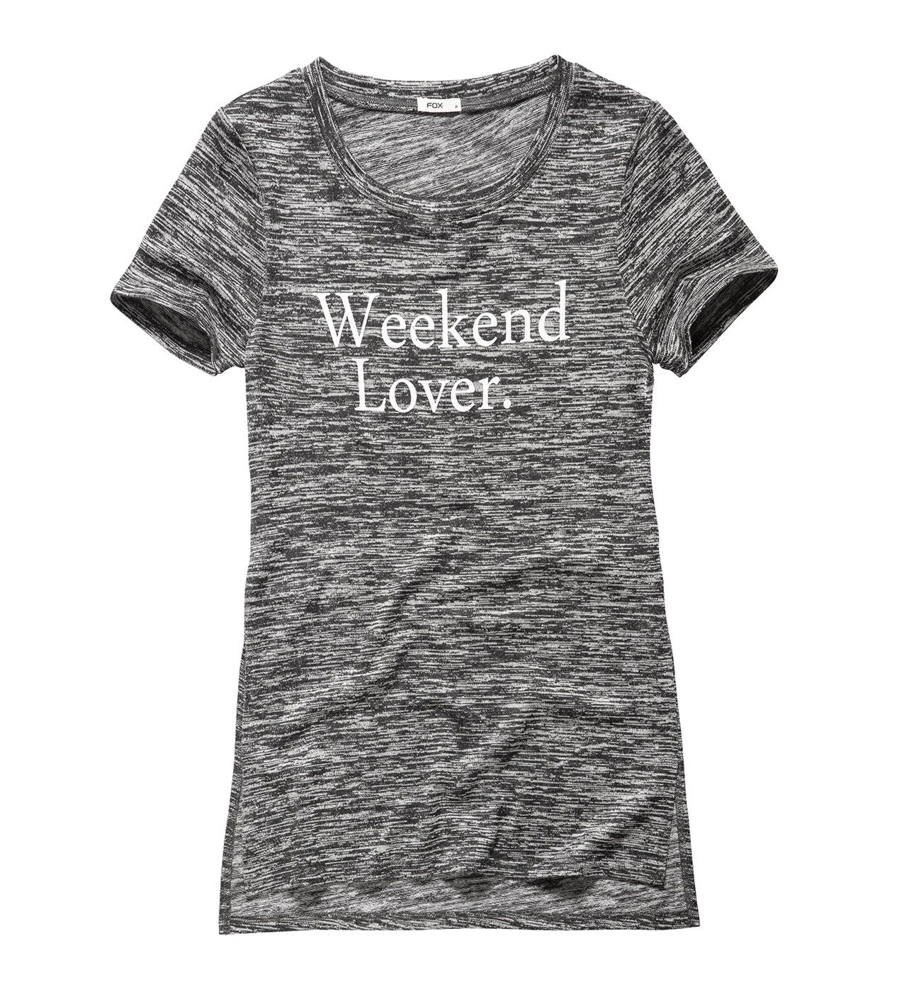 Футболка женская. Модель выполнена из трикотажа (кулирка). Детали: круглый вырез; принт; удлиненный силуэт; разрезы по бокам.