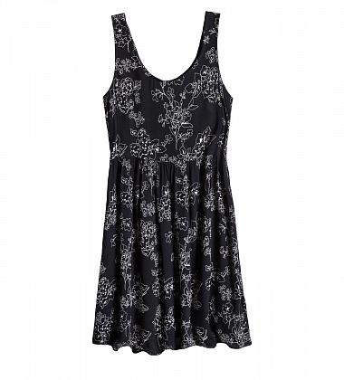 Платье женское. Модель выполнена из трикотажа (кулирка). Детали: длина- мини; тонкие лямки; круглый вырез; приталенный силуэт; присборенная юбка.