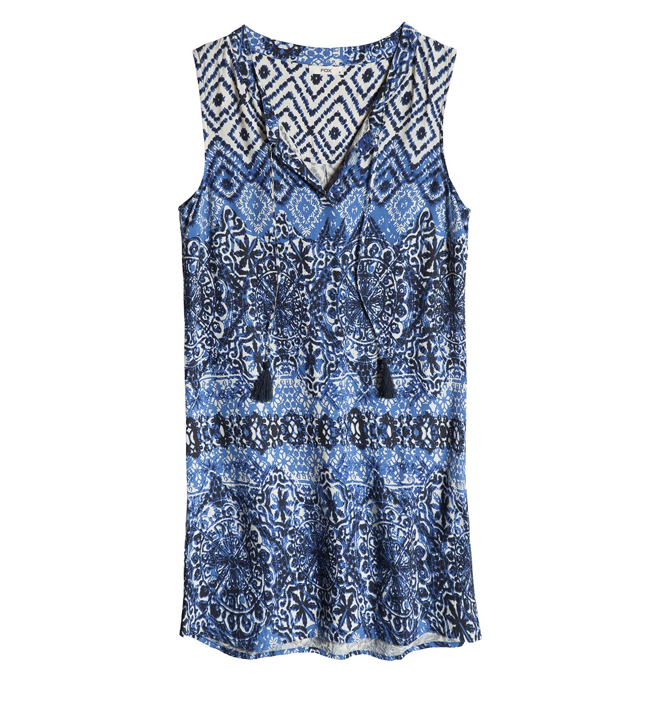 Платье женское свободного покроя с орнаментами цвета индиго - прекрасный выбор для ярких эксцентричных особ, желающих всегда оставаться в центре внимания. Такая одежда прекрасно подходит для ежедневной носки, не сковывает движений и дает коже дышать.