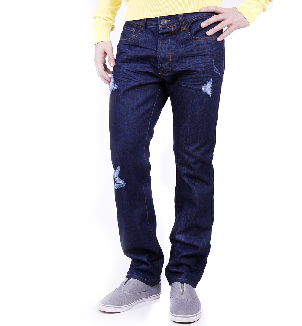 Джинсы мужские классические. Стиль- повседневный. Модель выполнена из плотного хлопка. Детали: средняя посадка; пять карманов; застежка на молнию, пуговицу; потертости.