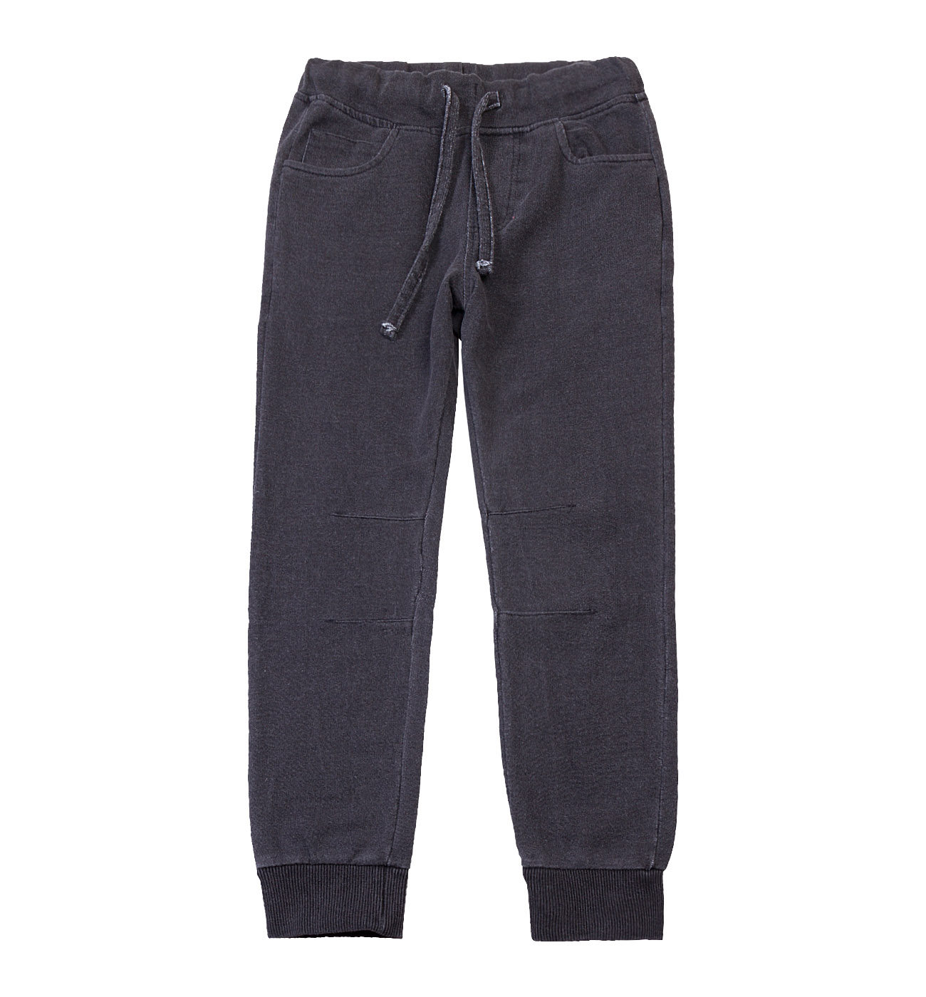 Брюки для мальчиков. Модель выполнена из петельчатого футера. Детали: пояс на резинке и кулиске со шнурком; четыре кармана (два спереди, два сзади); манжеты на трикотажной резинке.